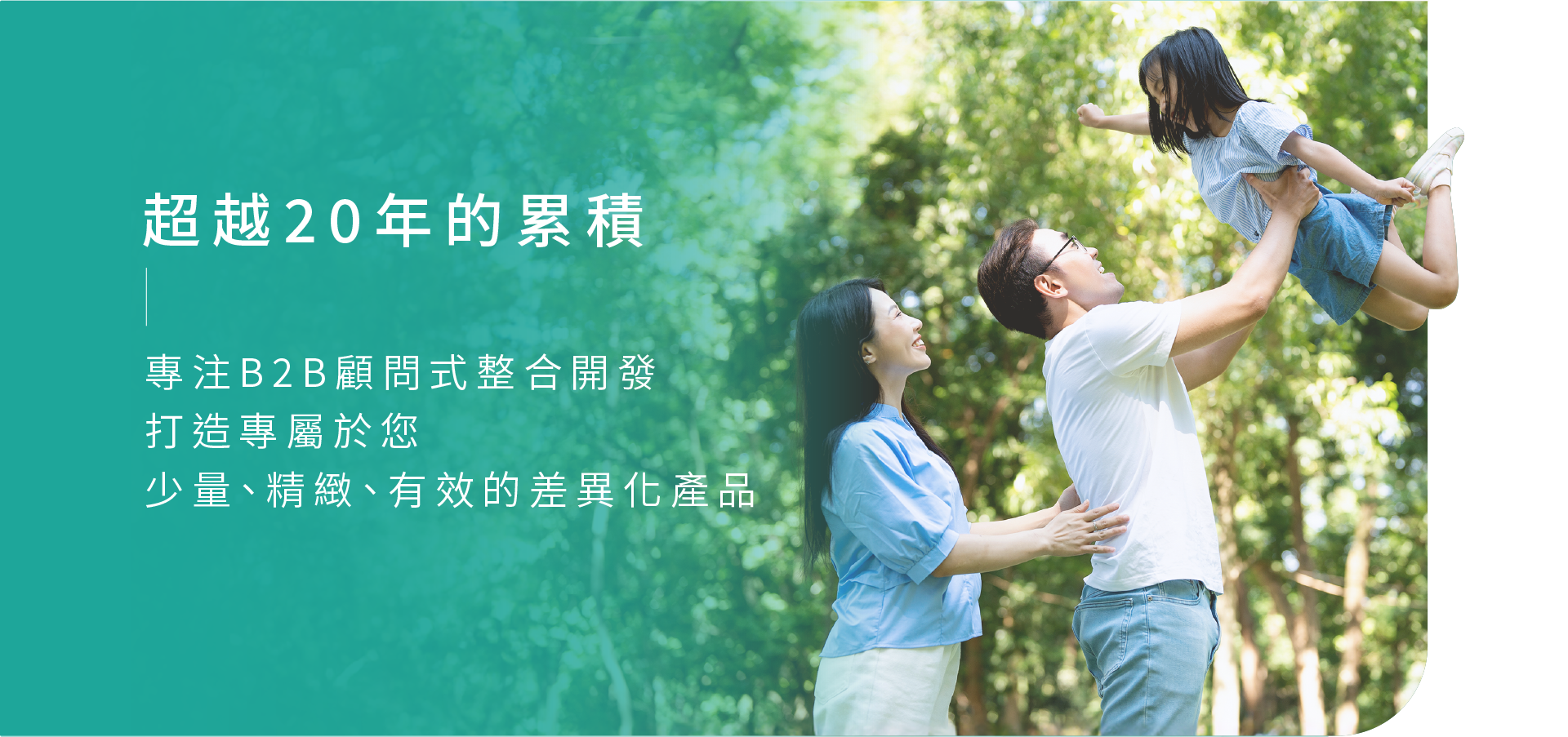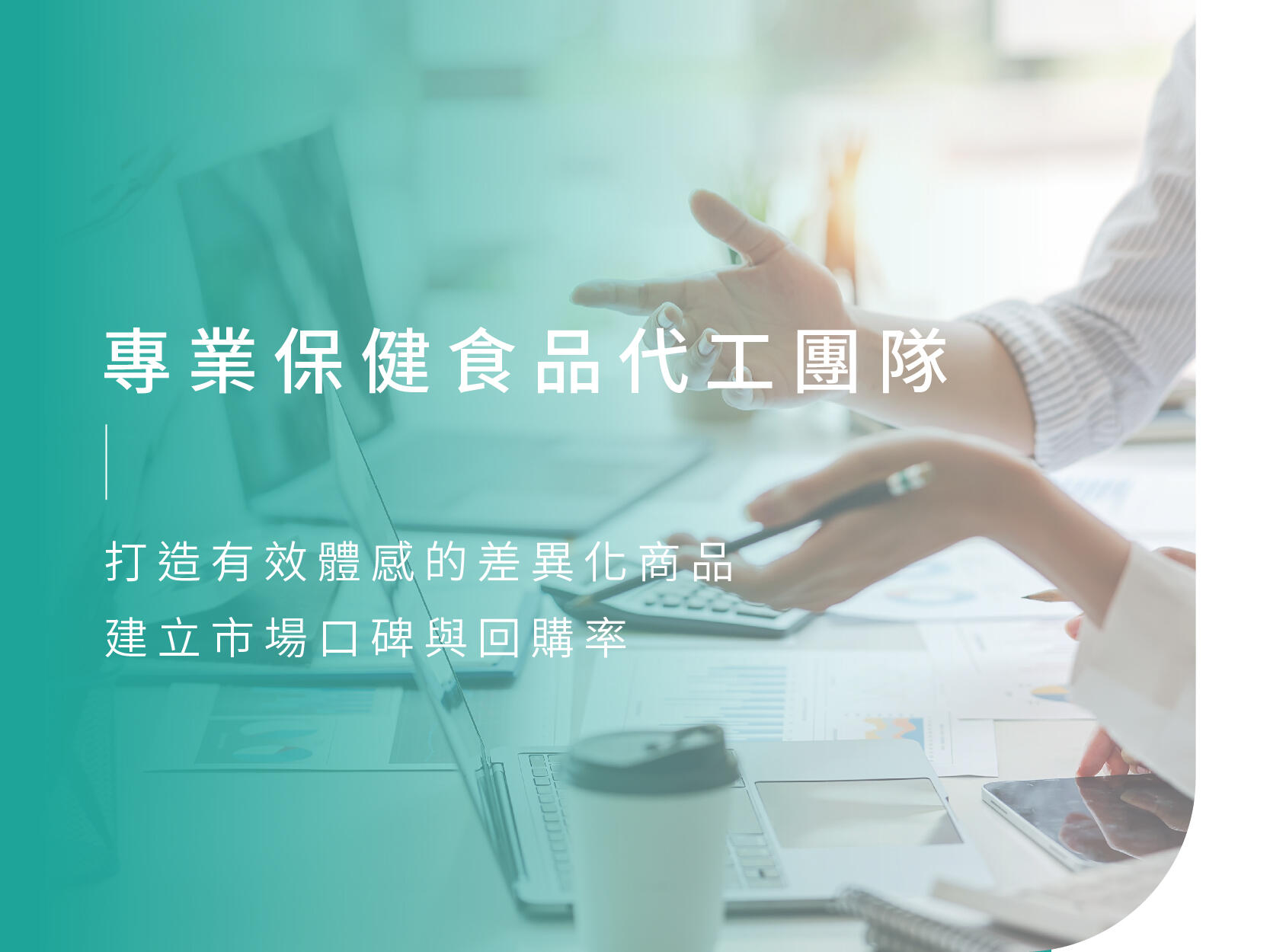 憑藉多年保健領域的專業知識累積與市場嗅覺,適時提供更優質的升級配方,並隨時掌握衛服部相關規定,同步更新給品牌商
